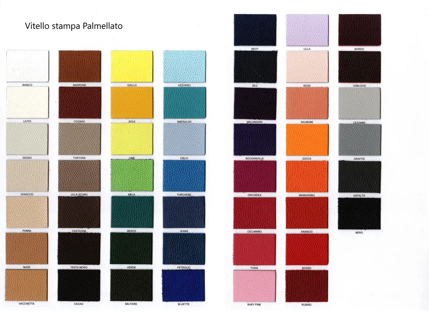 Dai neutri classici alle tonalità decise, dalla pelle naturale alle lavorazioni in stampa dollaro, la nostra ampia libreria colori ti garantisce sempre la possibilità di valorizzare al meglio l’immagine del tuo brand.