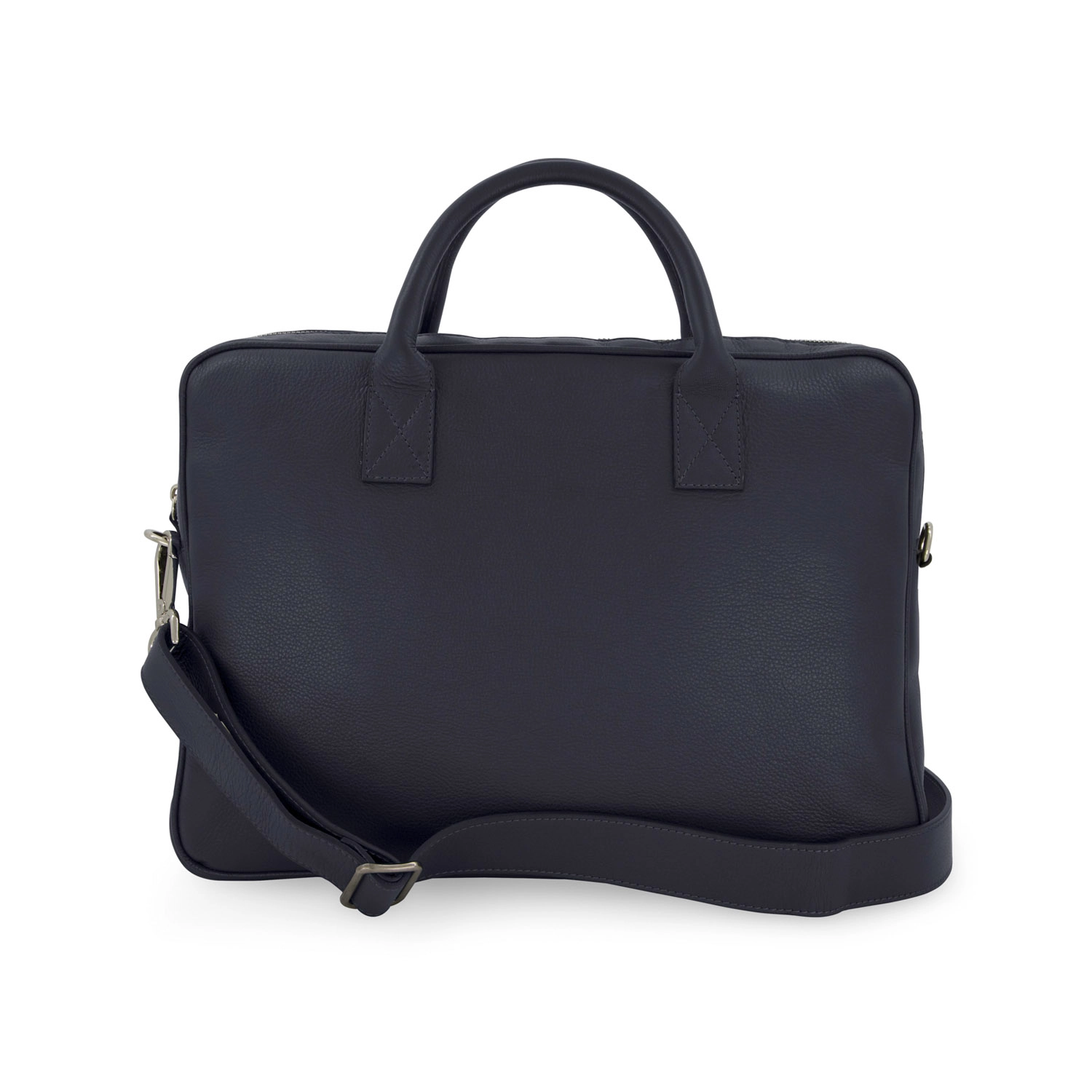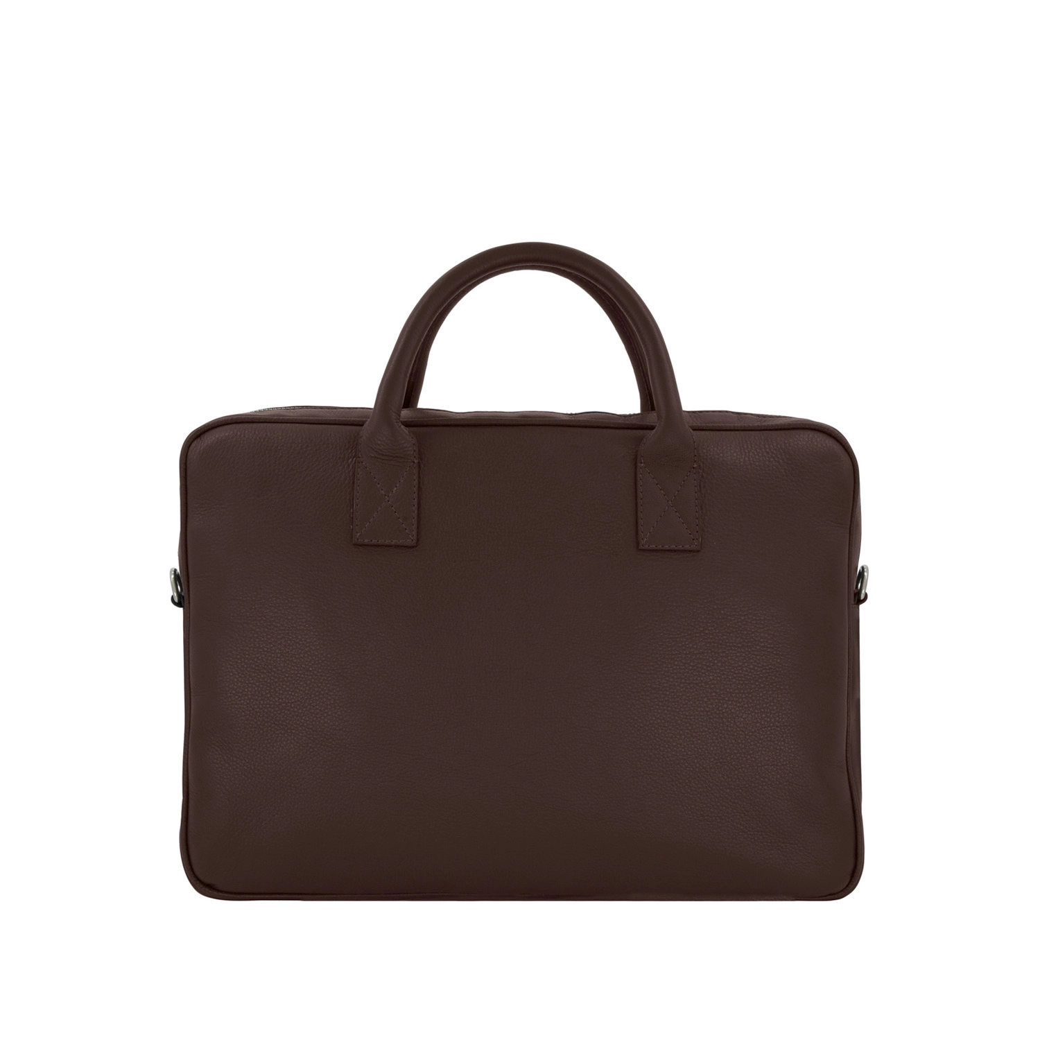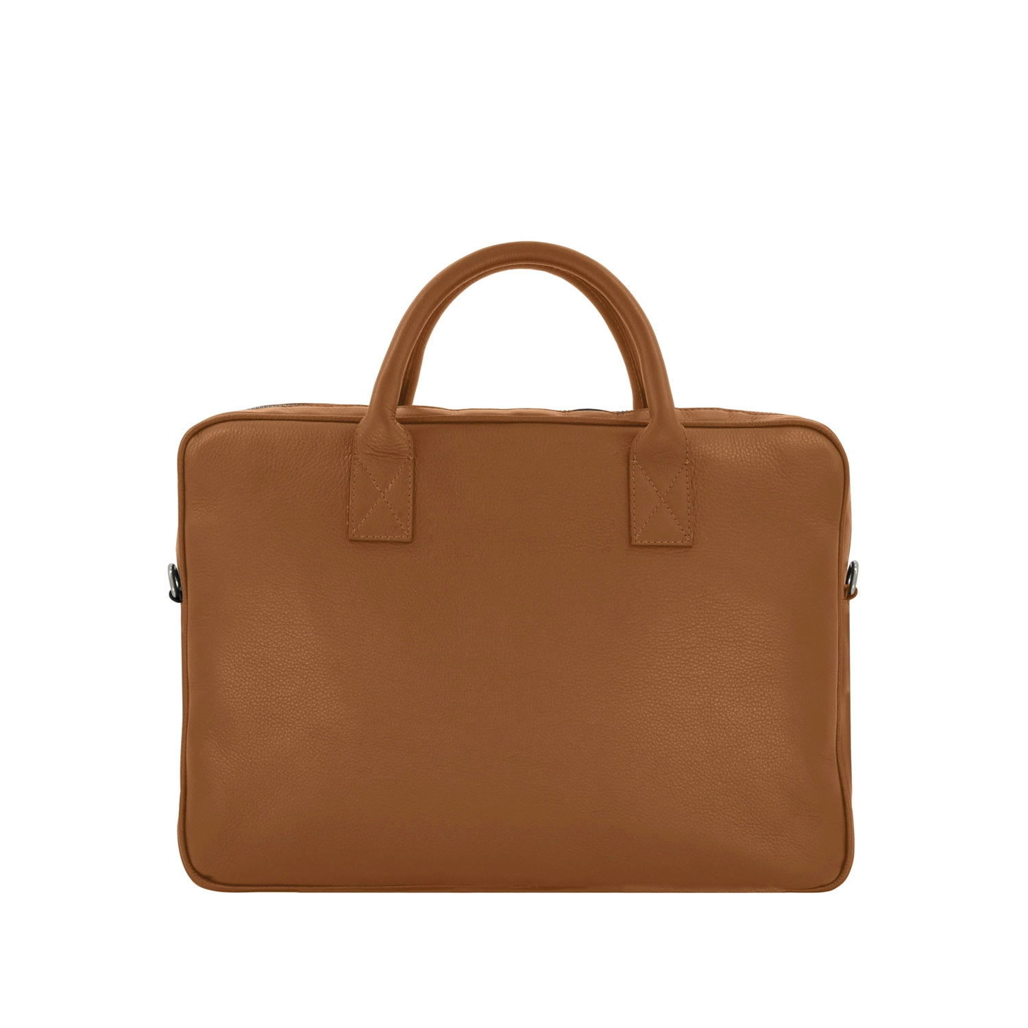 Cartella business porta documenti, laptop con tracolla separabile con chiusura a zip, con tasca esterna per far passare il manico del trolley realizzata interamente in Italia in morbida pelle bovina naturale liscia di alta qualità. Personalizzabile con stampa a caldo o a secco del logo aziendale o delle iniziali oppure a ricamo.