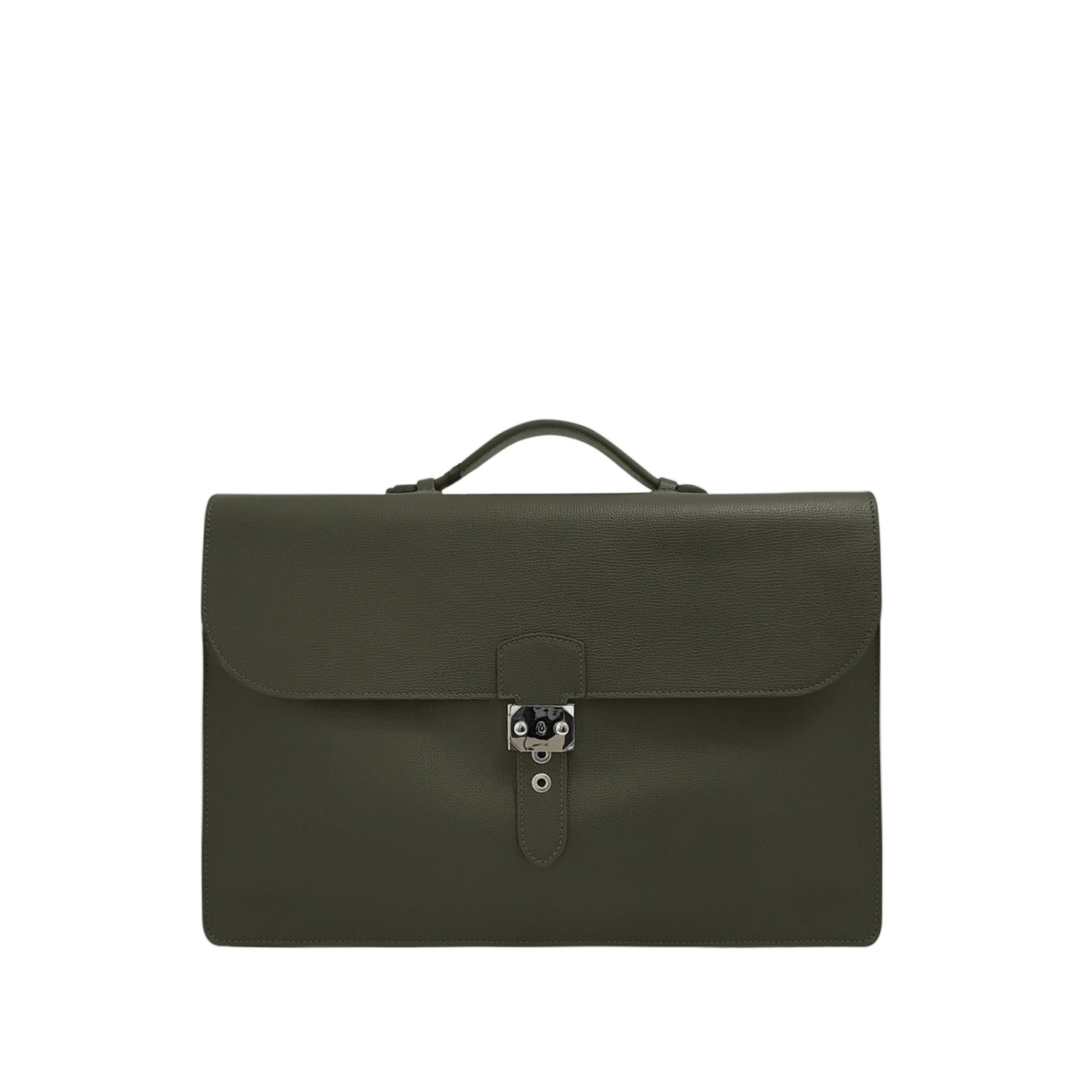 Elegante cartella a due soffietti portadocumenti, laptop e tablet realizzata interamente in Italia in pelle vitello grana Cervo di alta qualità, rifinita con tintura in costa. Personalizzabile con stampa a caldo o a secco del logo aziendale o delle iniziali.