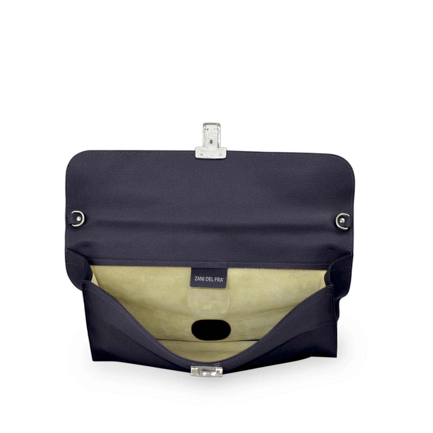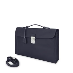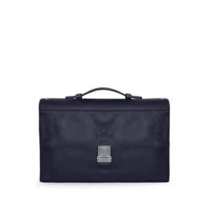 Cartella pieghevole salvaspazio ad un soffietto portadocumenti e laptop o tablet con tracolla separabile realizzata interamente in Italia in pelle vitello grana Cervo di alta qualità, rifinita con tintura in costa. Personalizzabile con stampa a caldo o a secco del logo aziendale o delle iniziali.