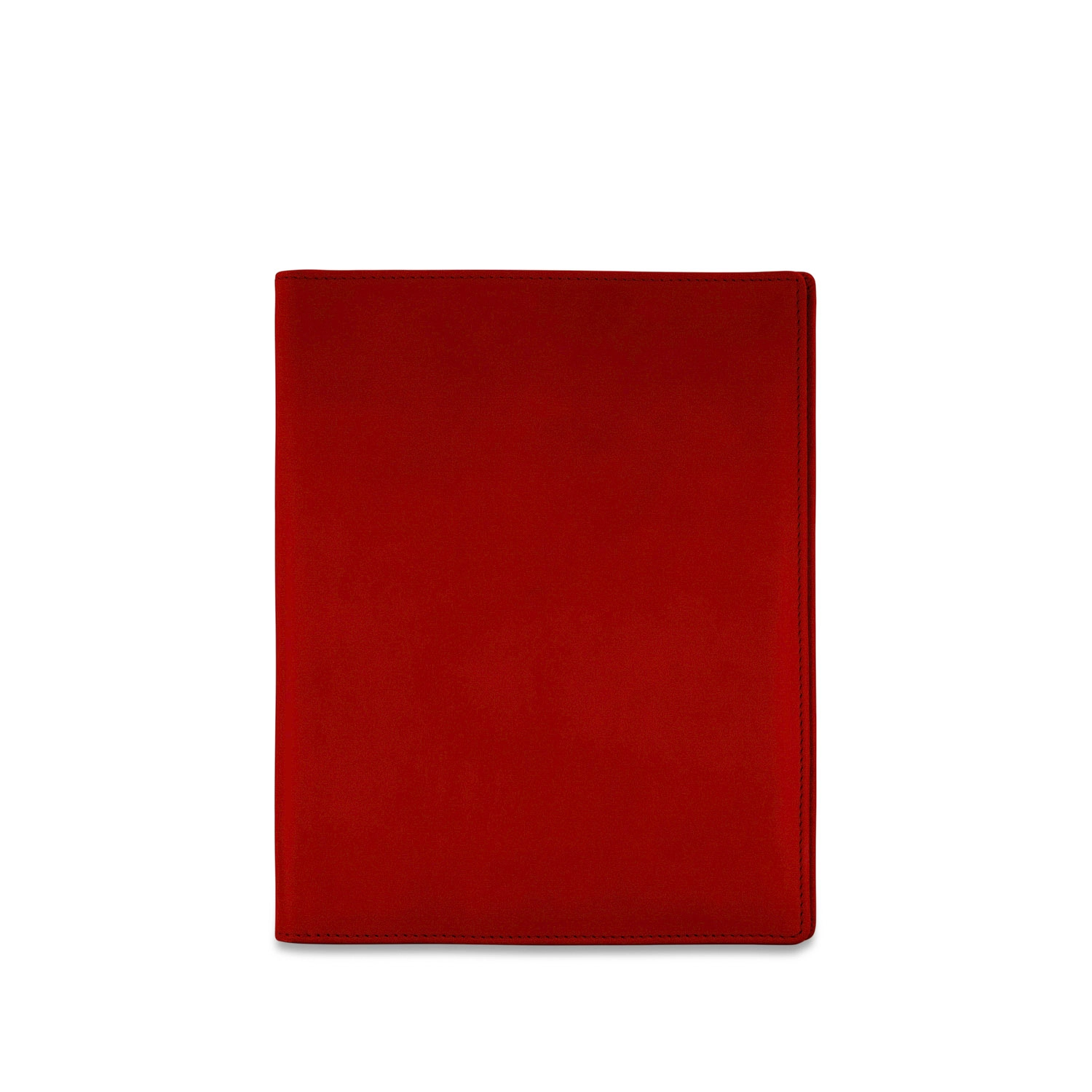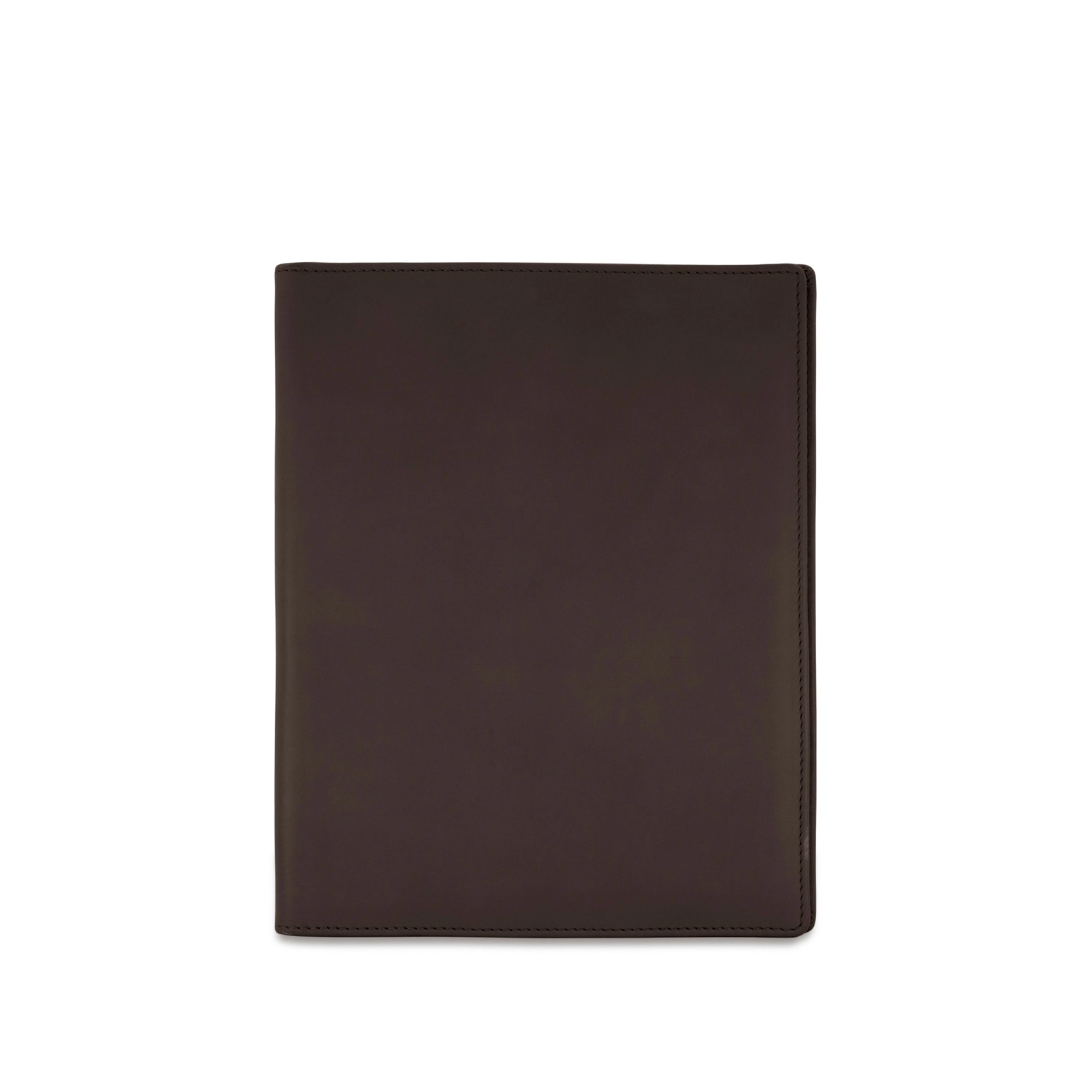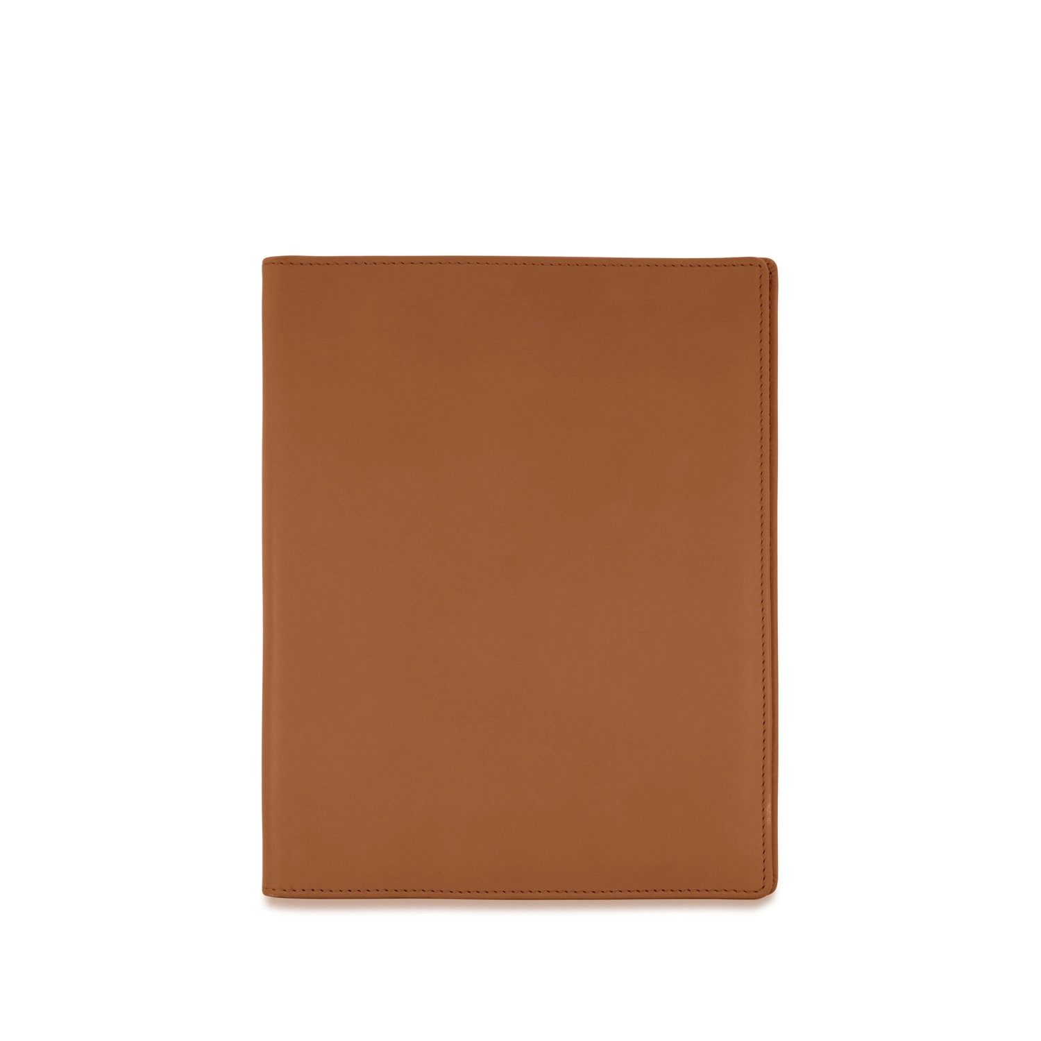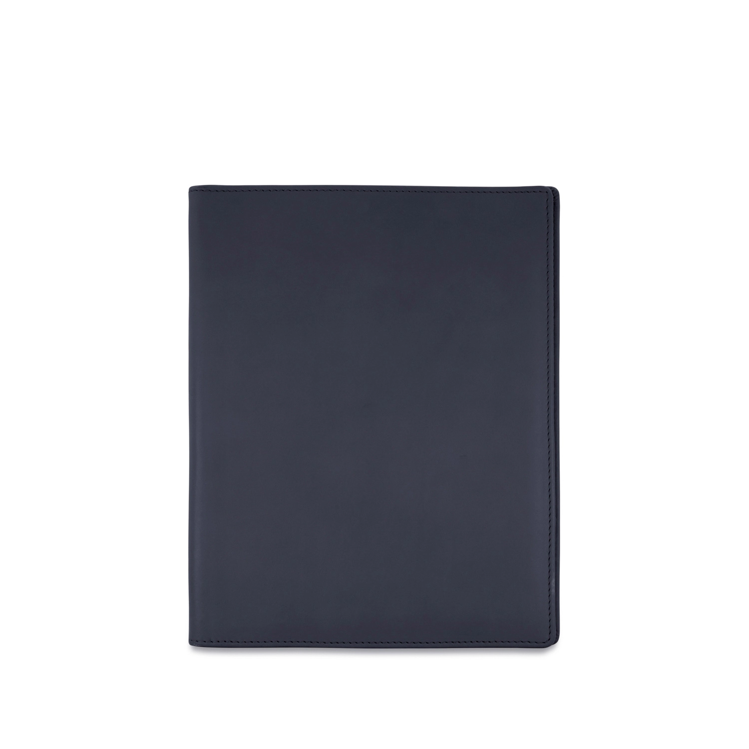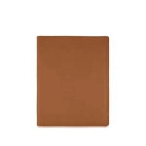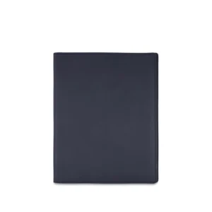 Folder portablocco A5 con portapenna e aletta con portabiglietti realizzato interamente in Italia in morbida pelle bovina naturale liscia di alta qualità, rifinito con cucitura a passo fine. Personalizzabile con stampa a caldo o a secco del logo aziendale o delle iniziali.