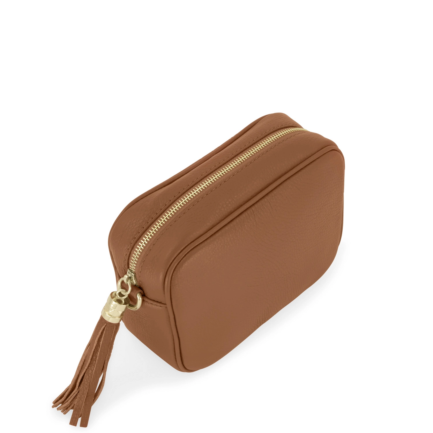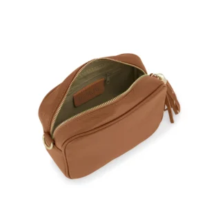 Pochette con tracolla e nappina tiralampo con chiusura a zip, realizzata interamente in Italia in pelle bovina grana Dollaro di alta qualità. Personalizzabile con stampa a caldo o a secco del logo aziendale o delle iniziali.