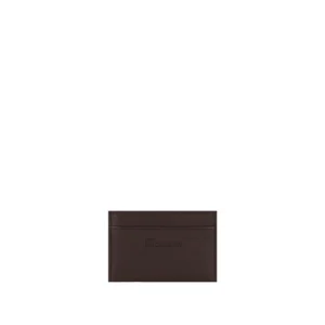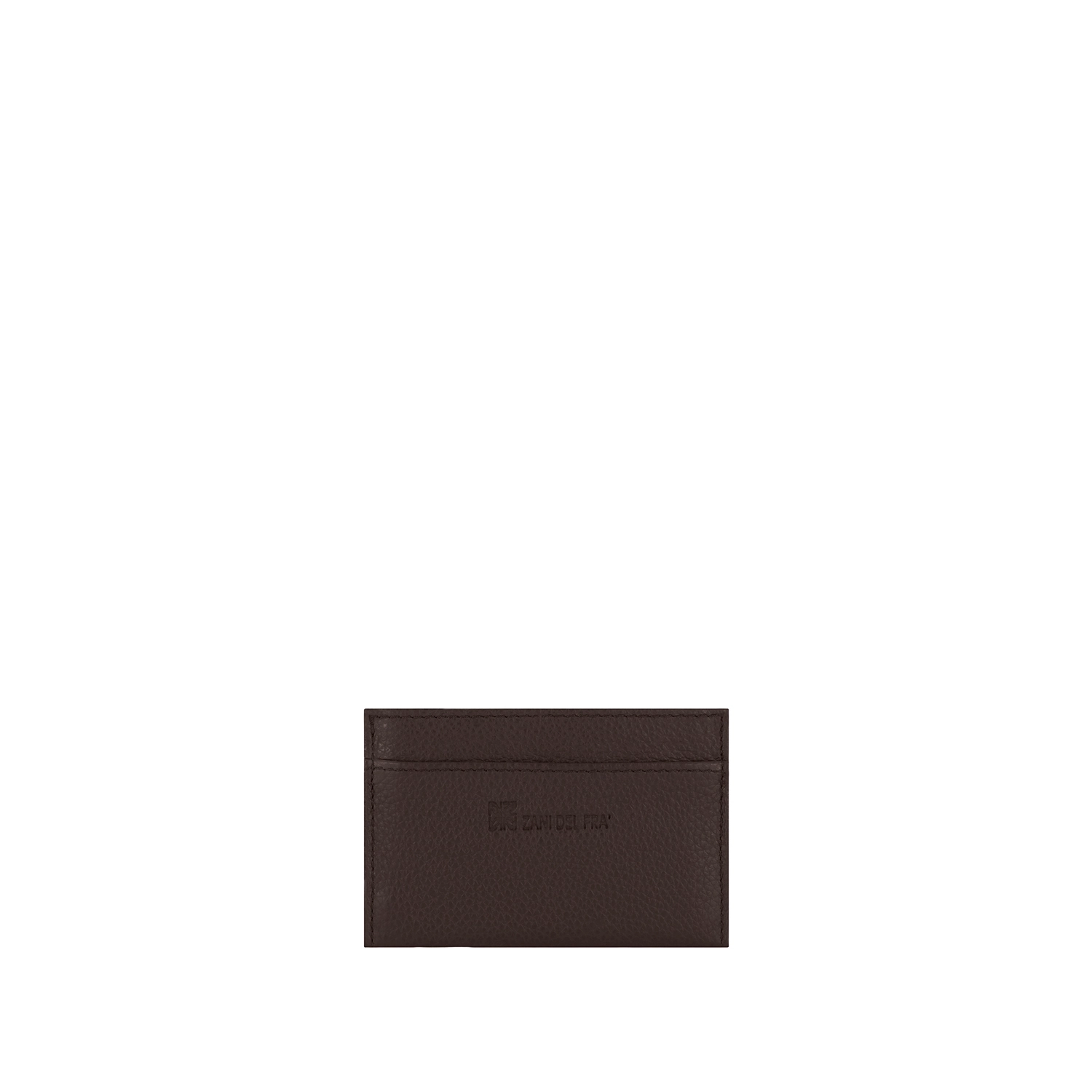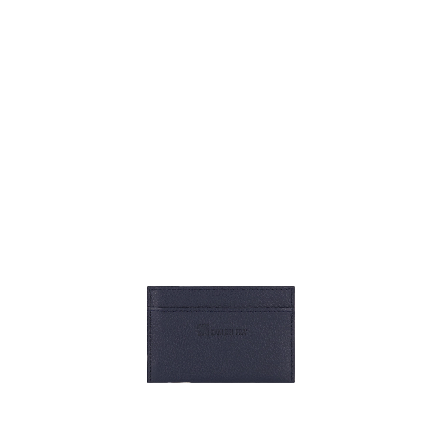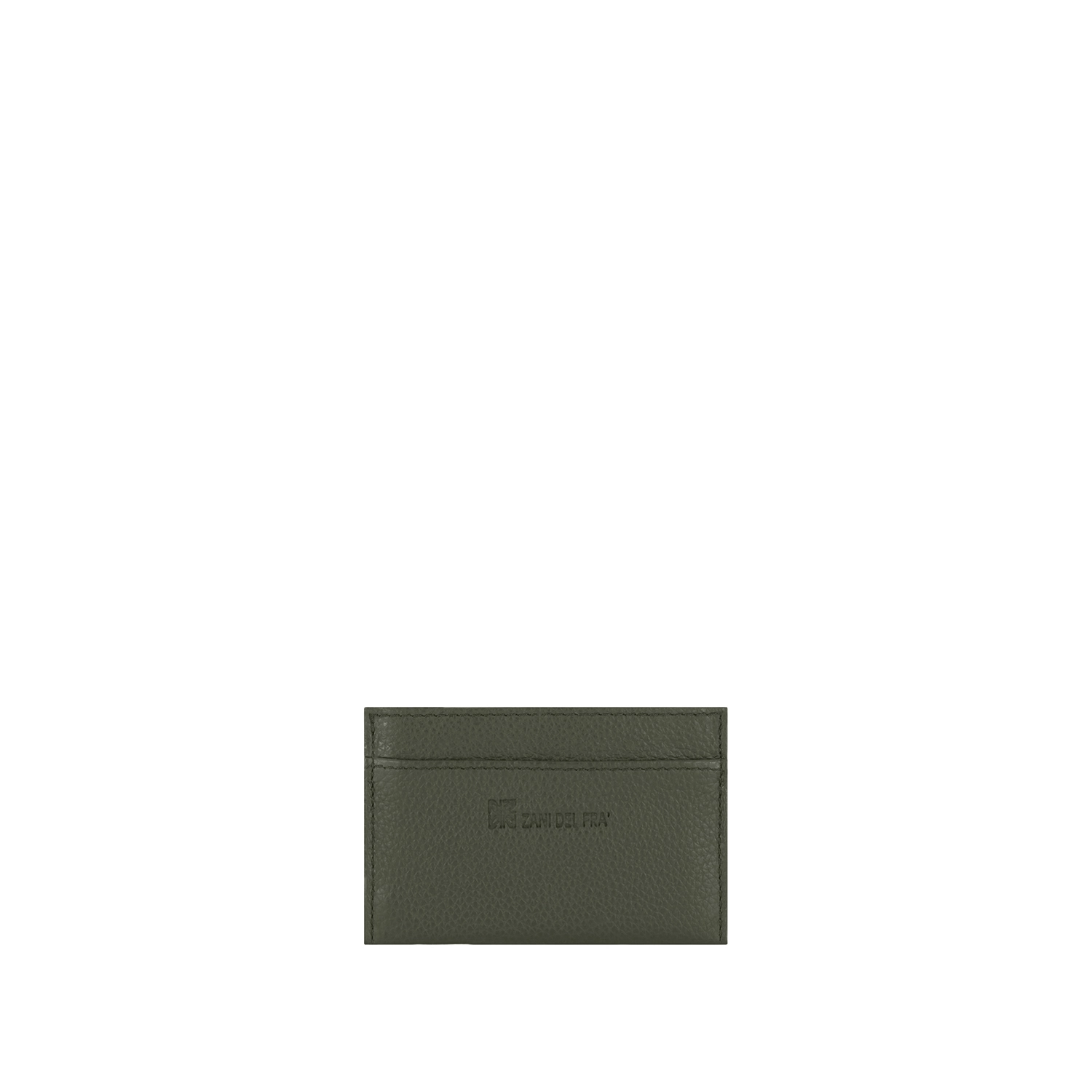 Porta carte di credito con una tasca per lato oltre che una tasca centrale realizzato interamente in Italia in morbida pelle vitello grana Cervo di alta qualità, rifinito con cucitura a passo fine. Personalizzabile con stampa a caldo o a secco del logo aziendale o delle iniziali.