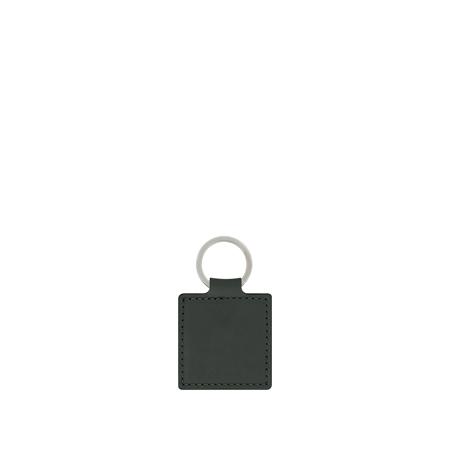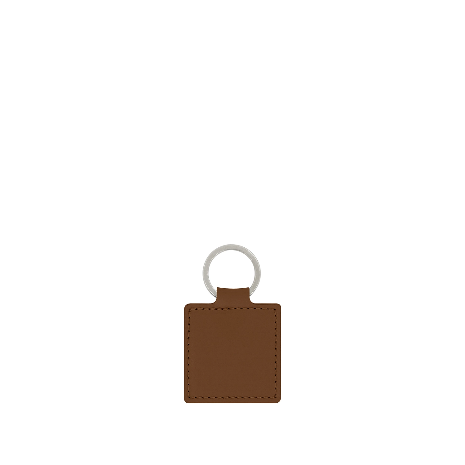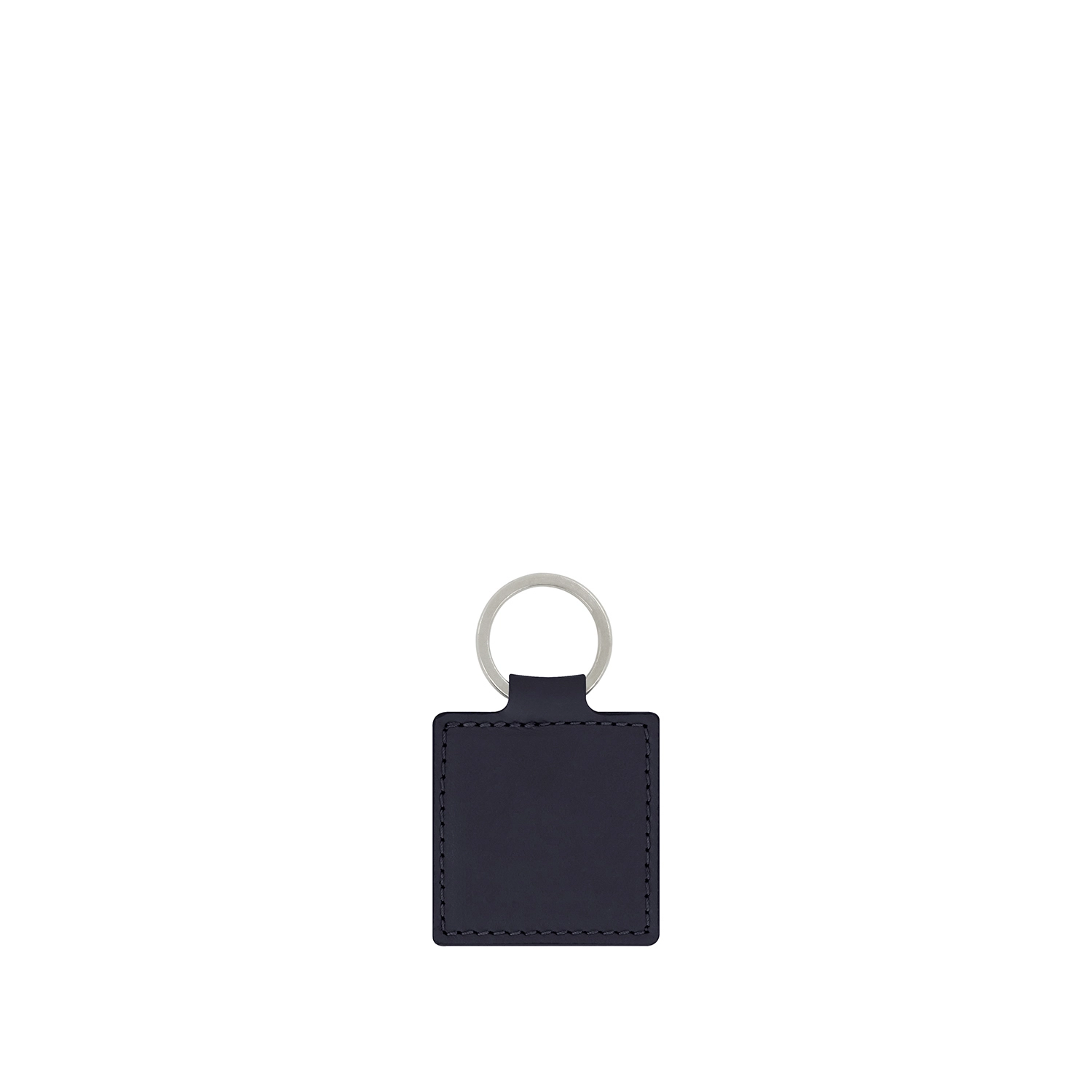 Portachiavi quadrato ad anello piatto realizzato interamente in Italia in pelle vitello liscia di alta qualità rifinito con tintura in costa e cucitura a passo fine. Personalizzabile con stampa a caldo o a secco del logo aziendale o delle iniziali