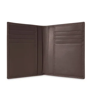 Porta foglio Uomo verticale da tasca della giacca realizzato interamente in Italia in pelle vitello lisica di alta qualità, rifinito con cucitura a passo fine. Personalizzabile con stampa a caldo o a secco del logo aziendale o delle iniziali