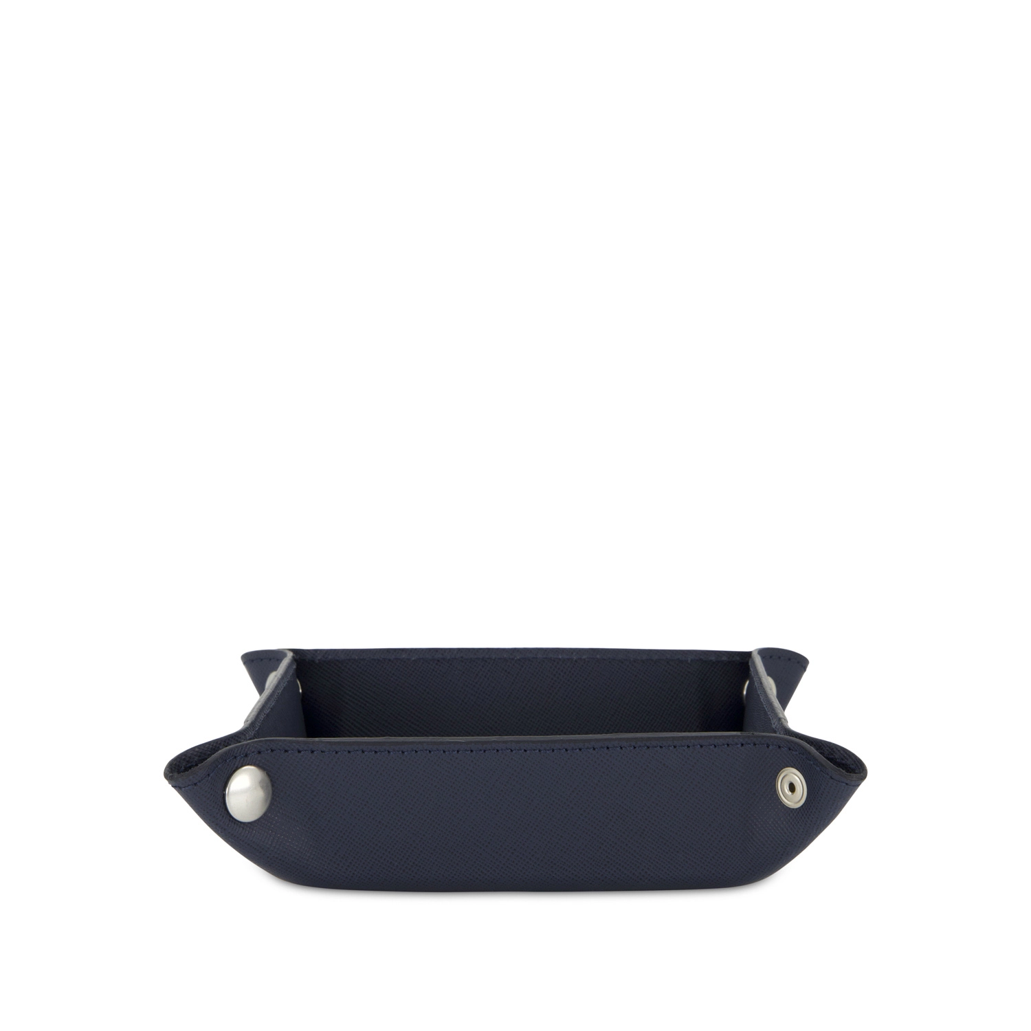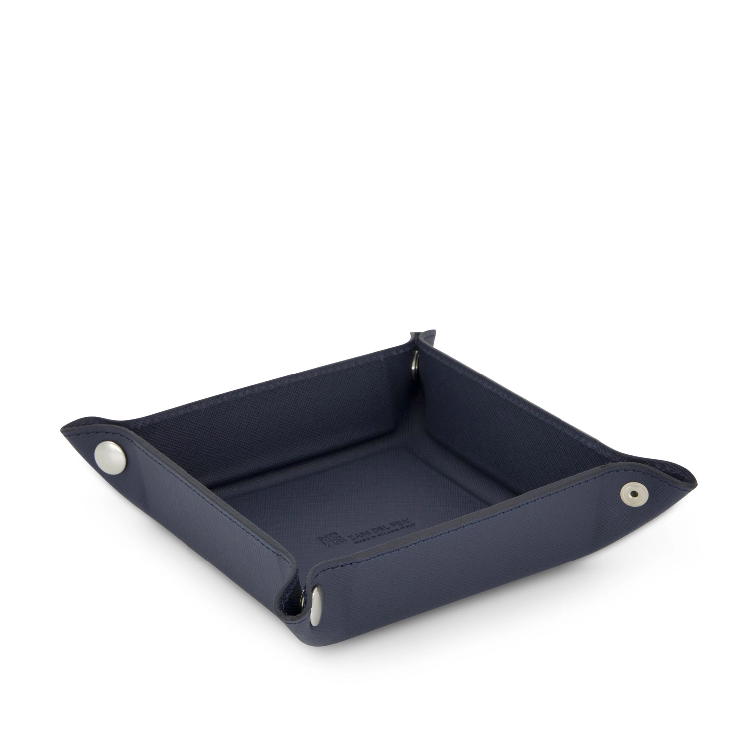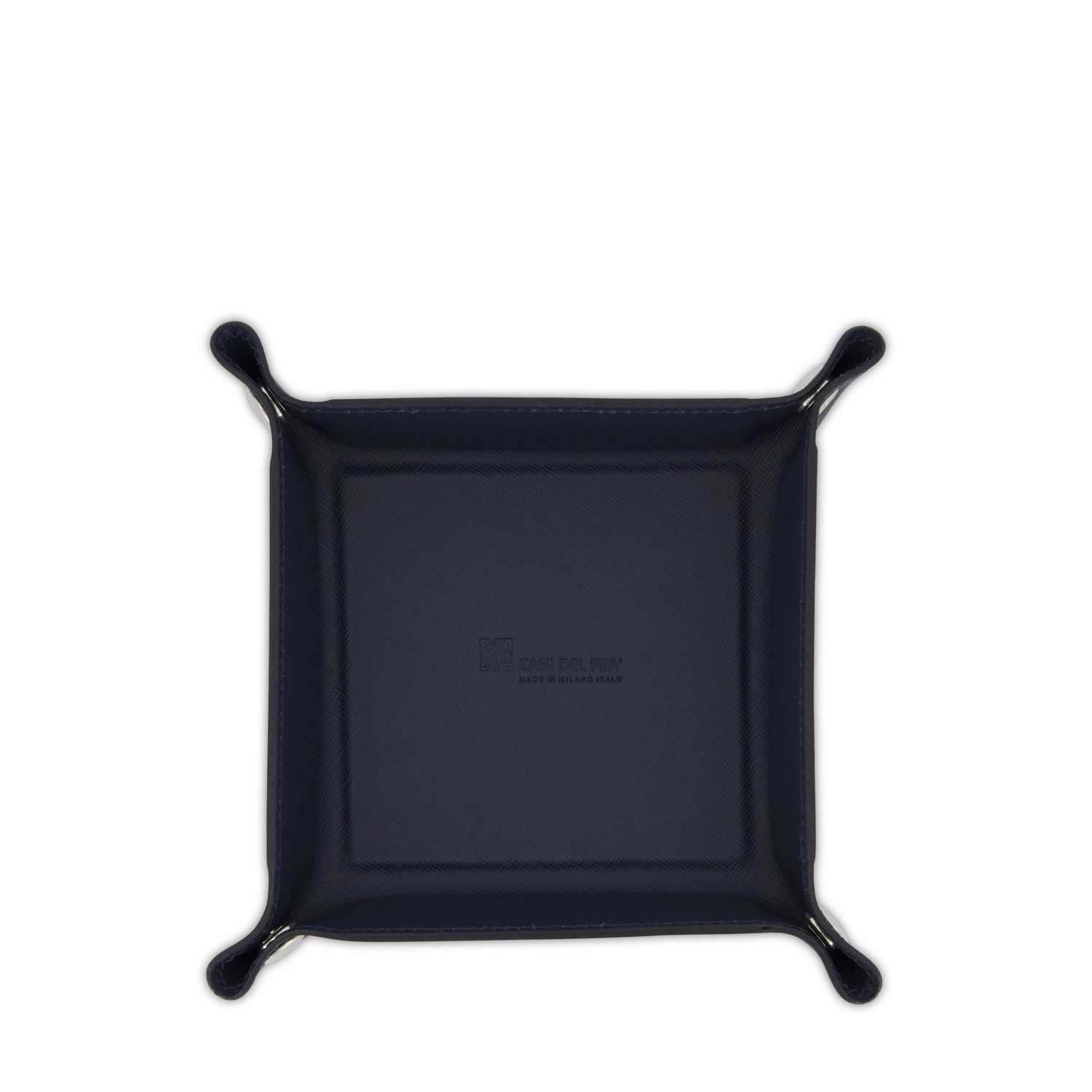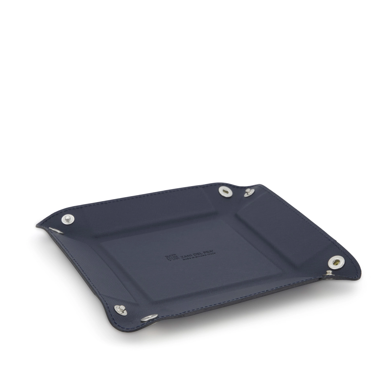 Svuota tasche quadrato con chiusura con bottoni a pressione realizzato interamente in Italia in pelle vitello stampa Saffiano di alta qualità, rifinito con tintura in costa e cucitura a passo fine. Personalizzabile con stampa a caldo o a secco del logo aziendale o delle iniziali.