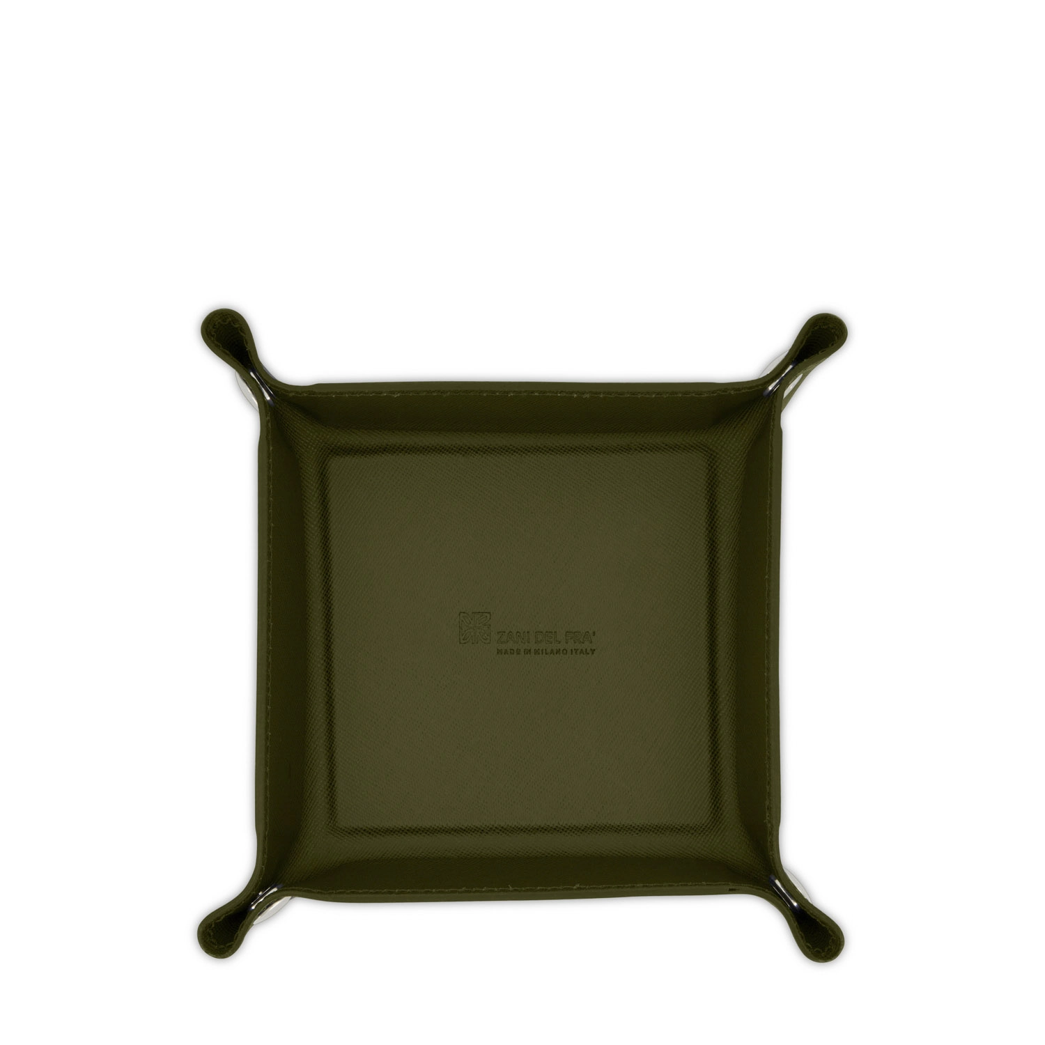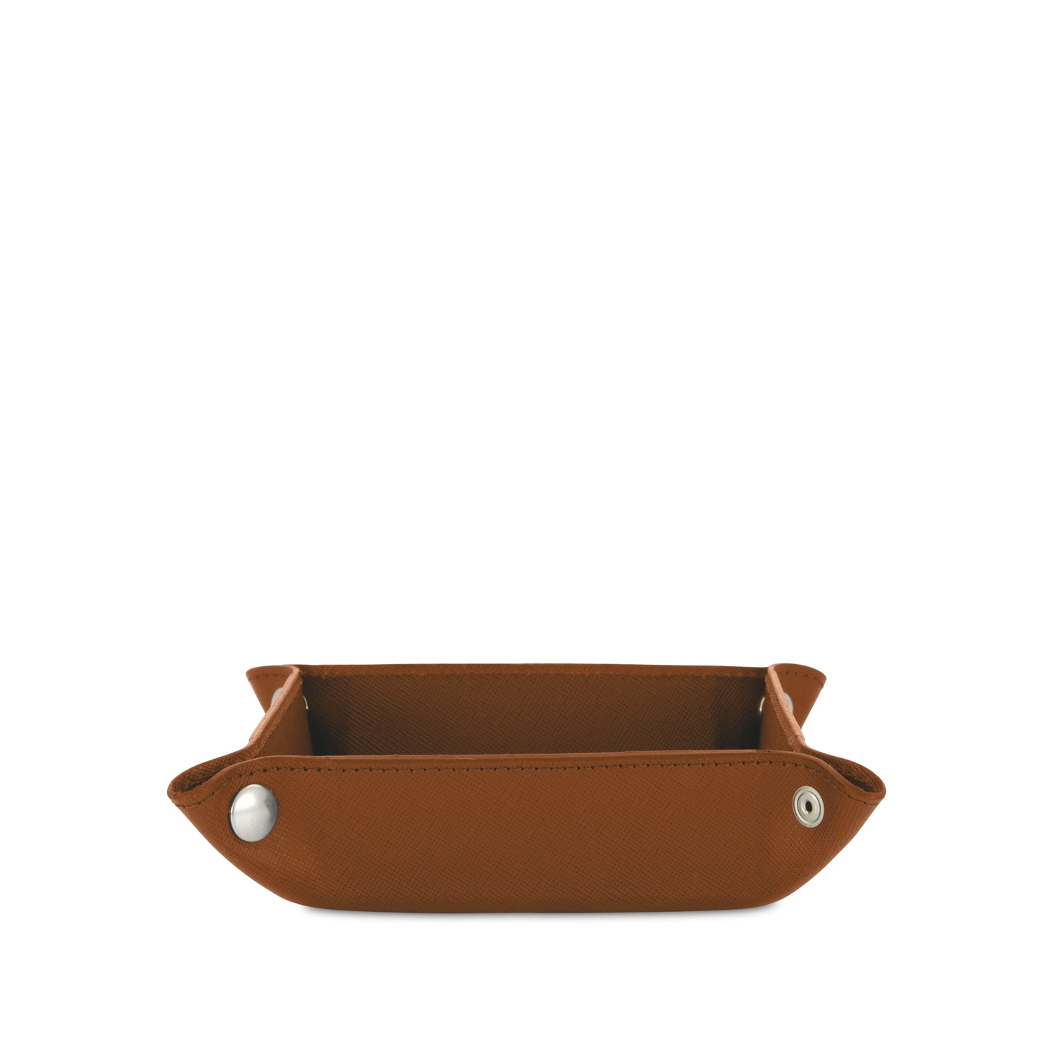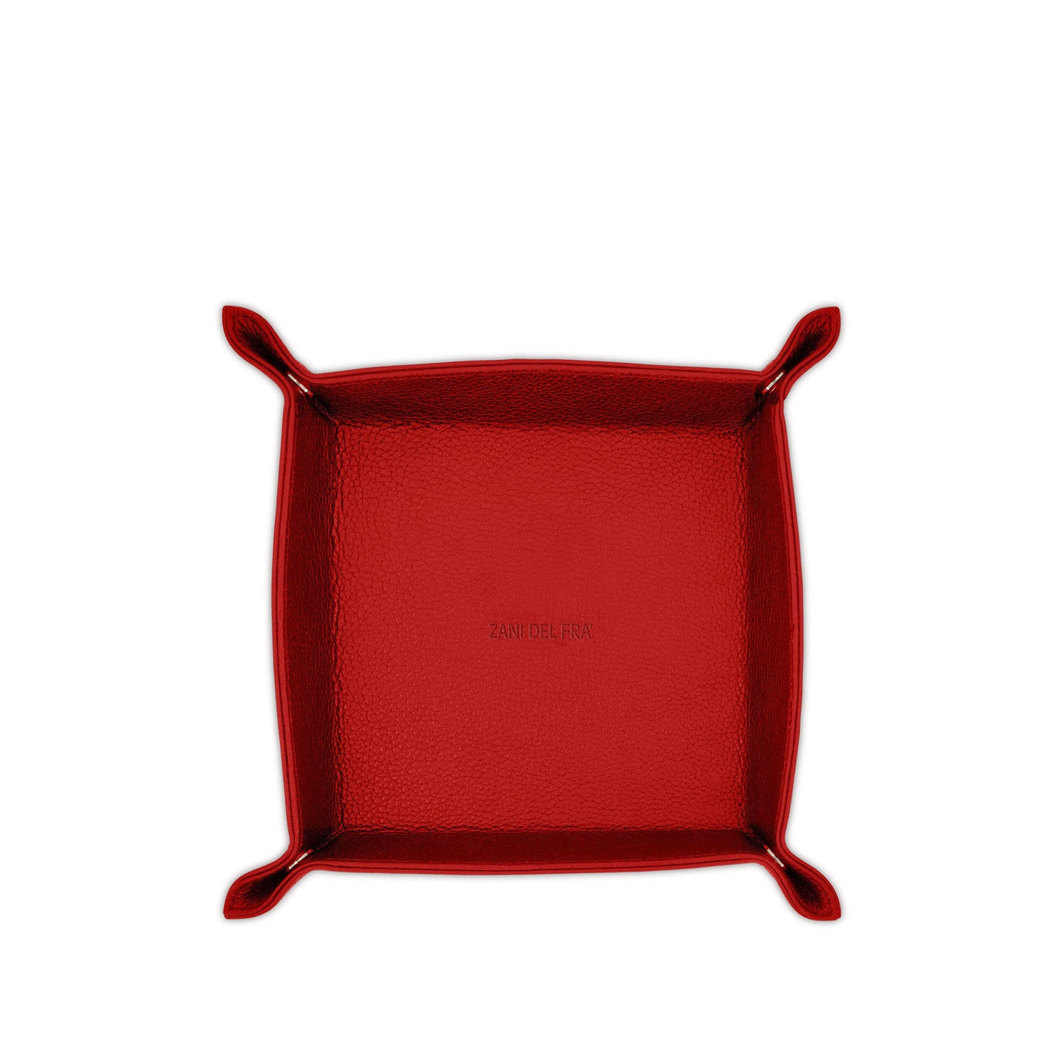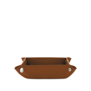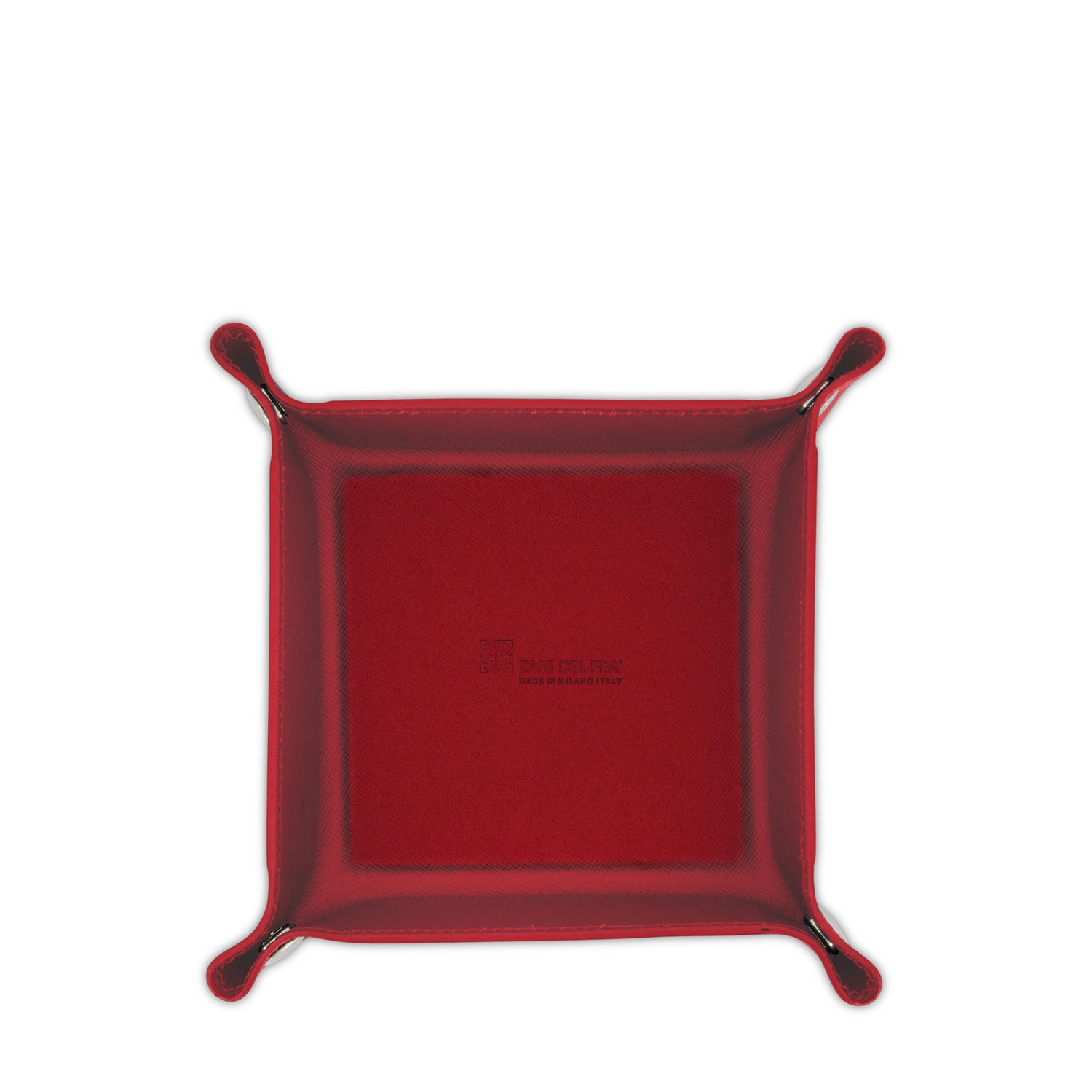 Svuota tasche quadrato con chiusura con bottoni a pressione realizzato interamente in Italia in pelle vitello stampa Saffiano di alta qualità, rifinito con tintura in costa e cucitura a passo fine. Personalizzabile con stampa a caldo o a secco del logo aziendale o delle iniziali.