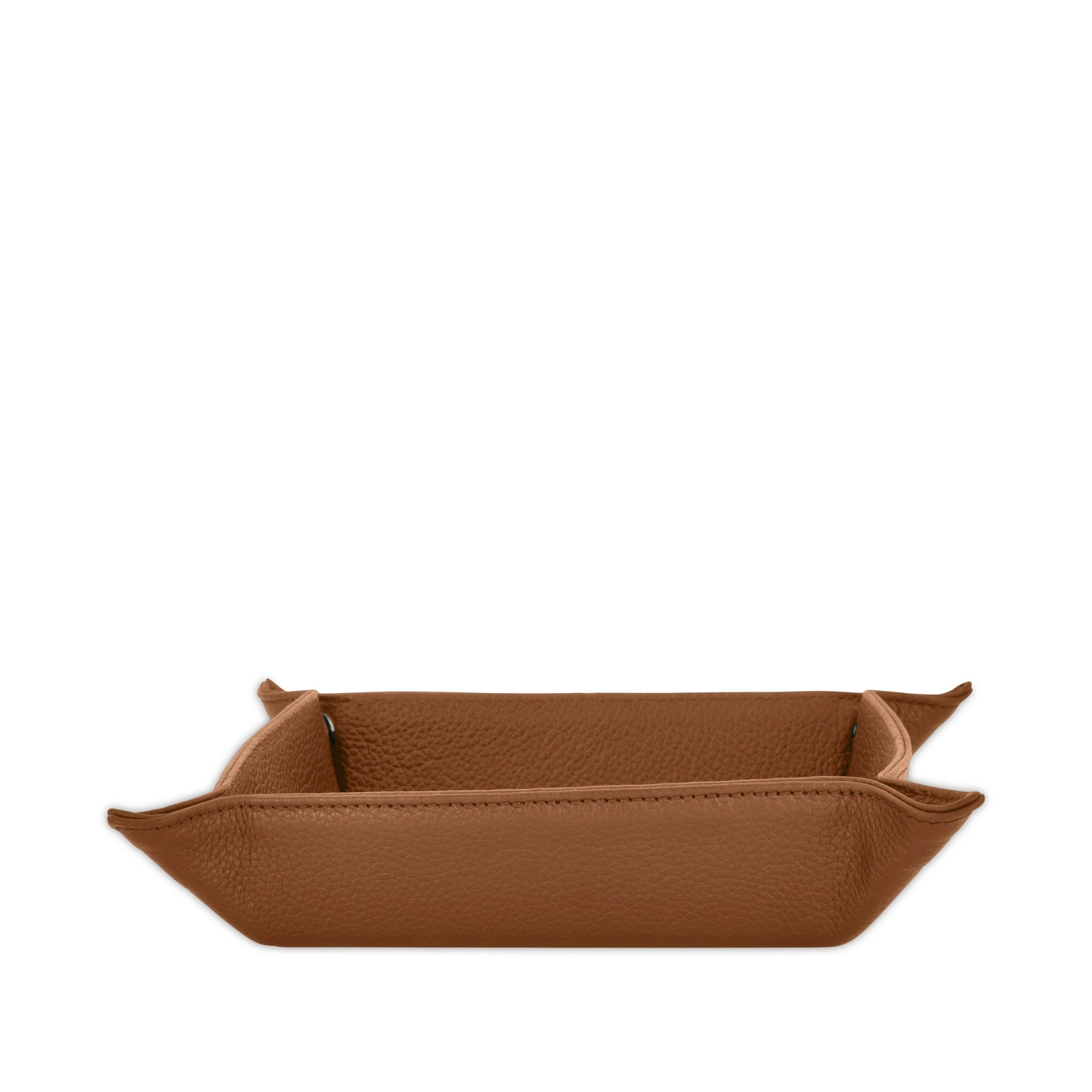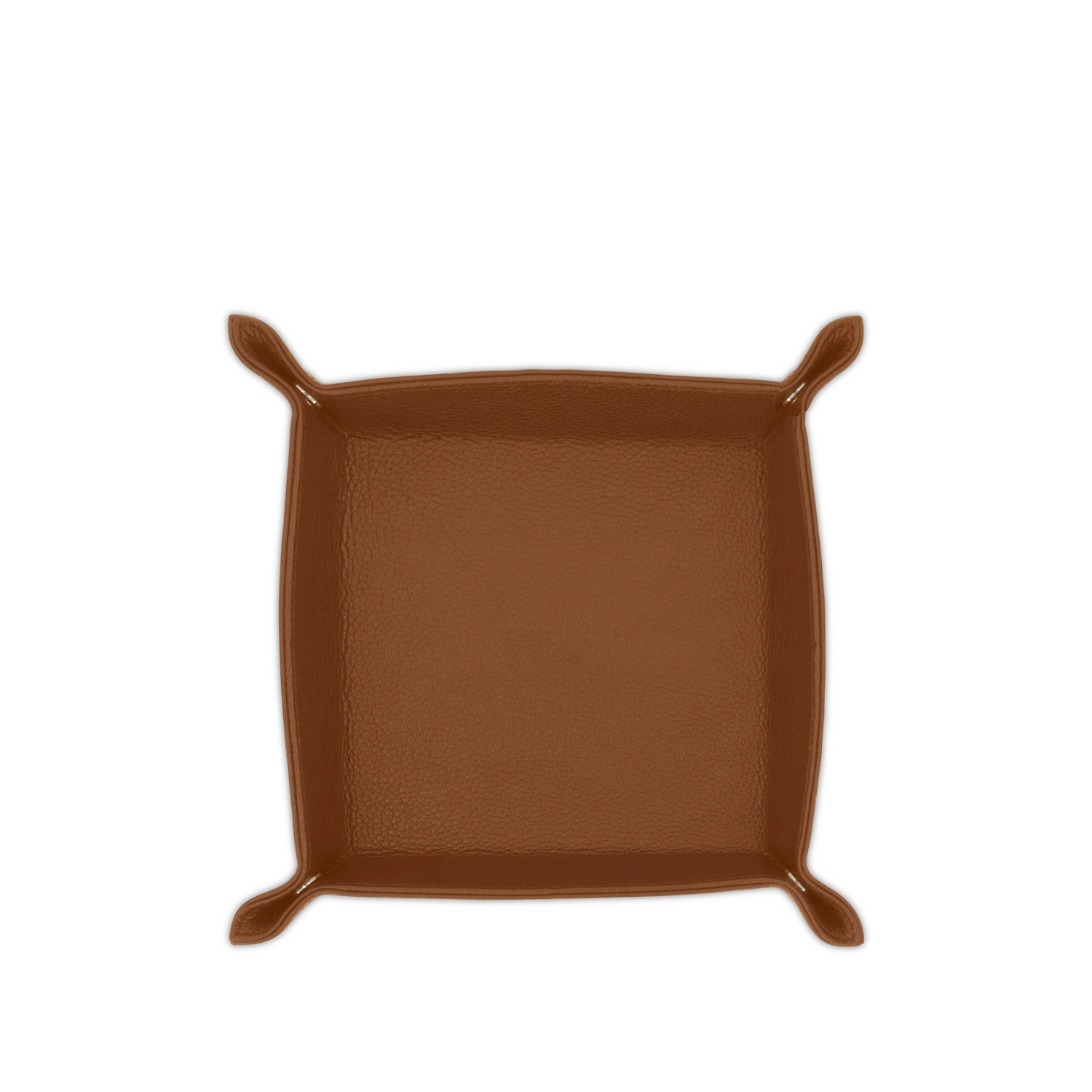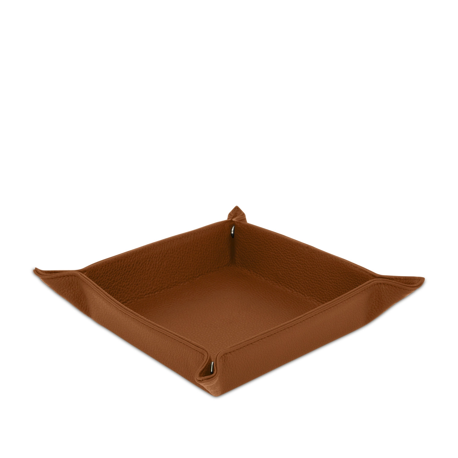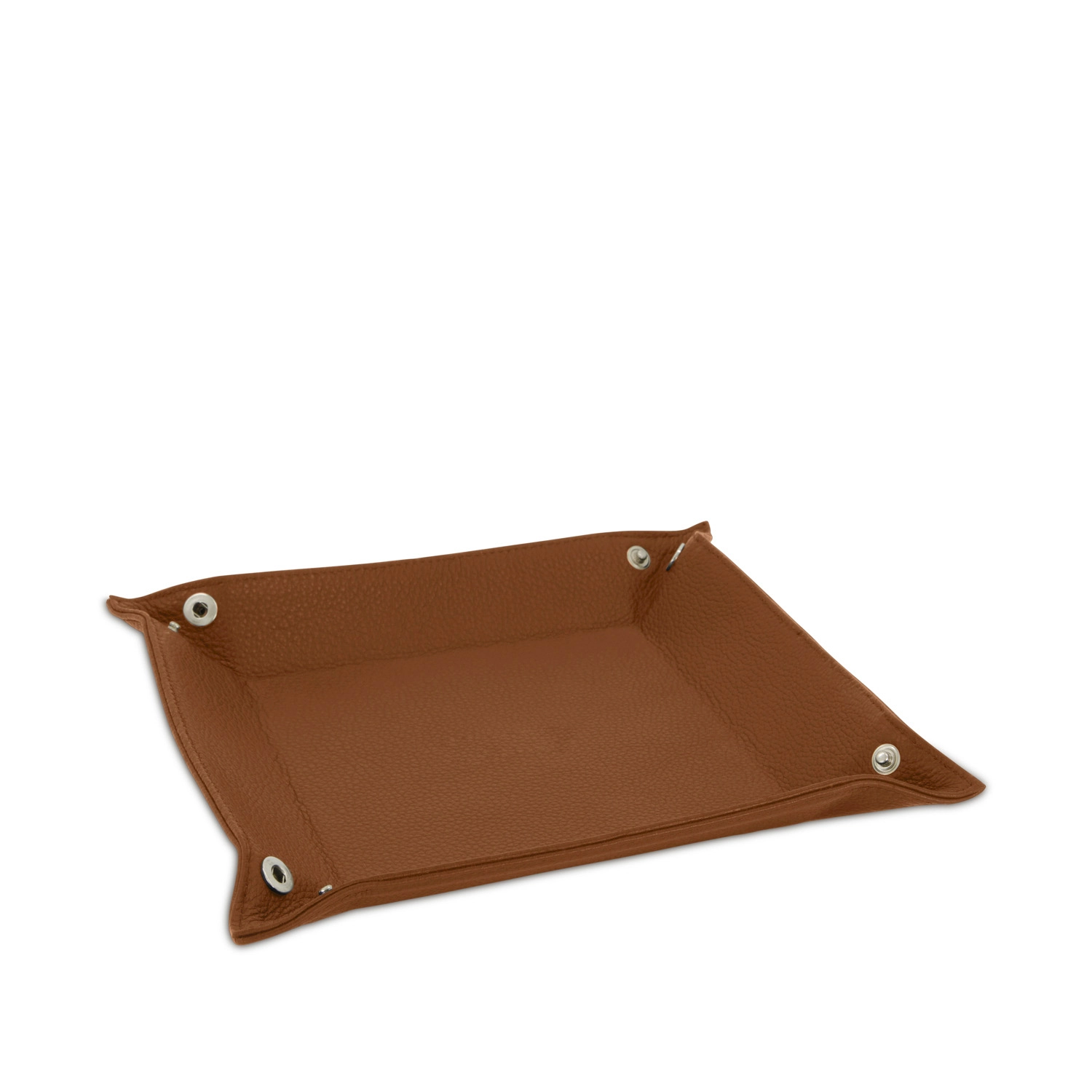 Svuota tasche quadrato con chiusura con bottoni a pressione realizzato interamente in Italia in pelle vitello grana Cervo di alta qualità, rifinito con cucitura a passo fine. Personalizzabile con stampa a caldo o a secco del logo aziendale o delle iniziali.