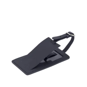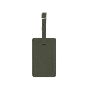 Porta nome da valigia di forma rettangolare con nastro a fibbia realizzato interamente in Italia in pelle vitello grana Cervo di alta qualità, rifinito con tintura in costa e cucitura a passo fine. Personalizzabile con stampa a caldo o a secco del logo aziendale o delle iniziali