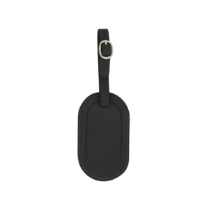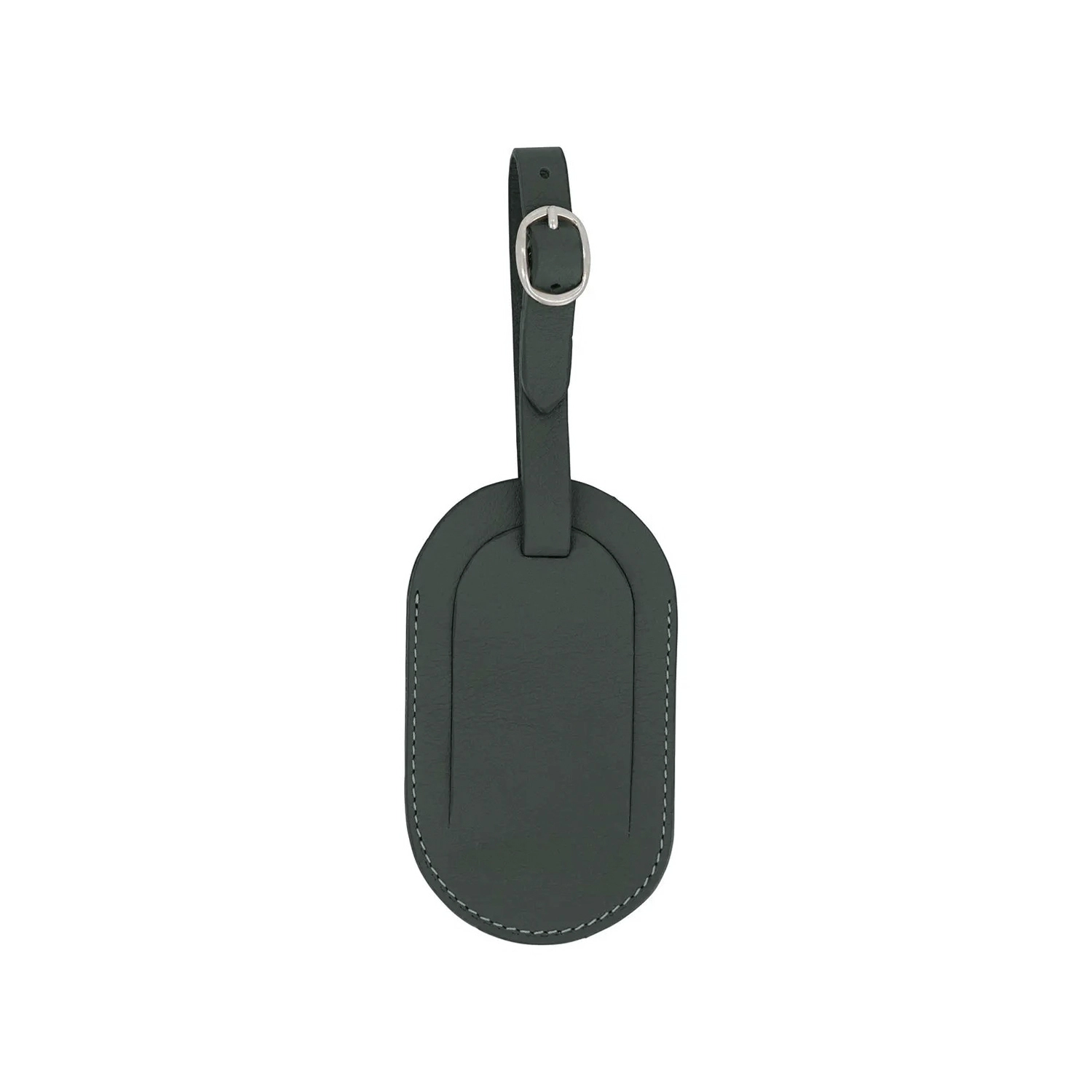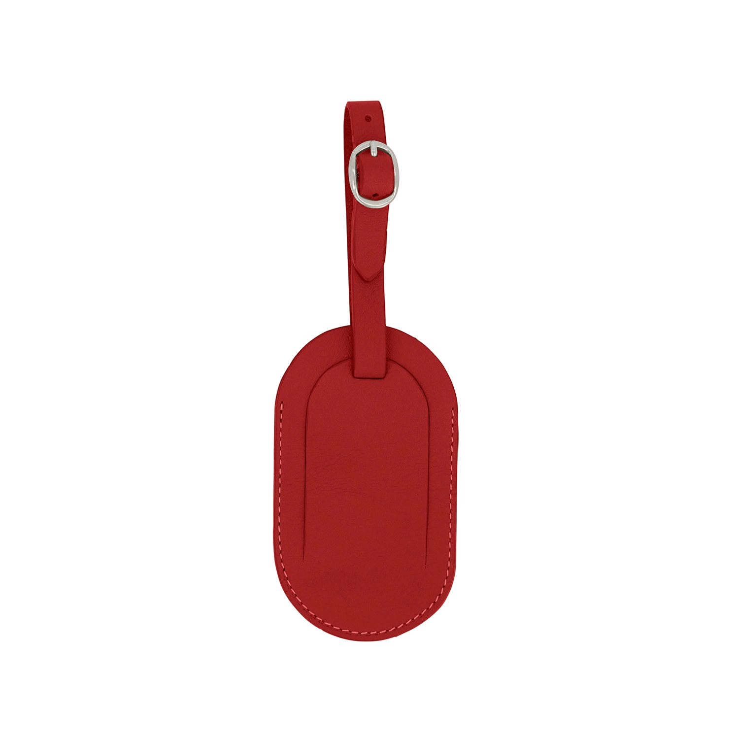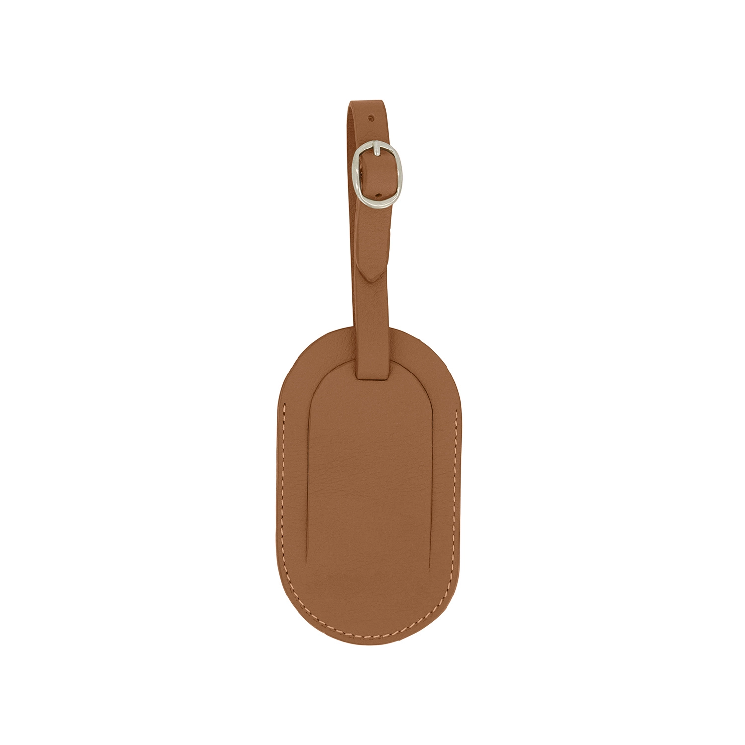 Porta nome da valigia di forma ovale con nastro a fibbia realizzato interamente in Italia in pelle bovina naturale liscia di alta qualità, rifinito con tintura in costa e cucitura a passo fine. Personalizzabile con stampa a caldo o a secco del logo aziendale o delle iniziali